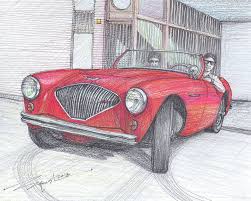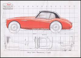 Gerry Coker, designer of the Healey 100 working on his drawing board. Gerry was inspired by the appearance of Italian cars. He was responsible for the attractive styling of the Austin Healey’s, a styling that today still fascinate many people.